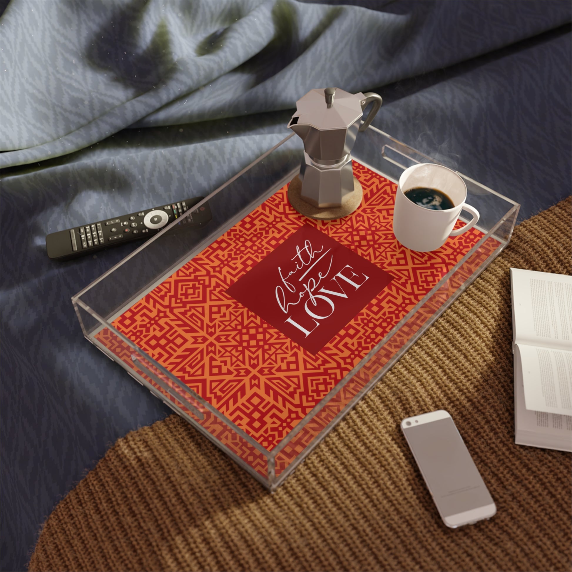 Add a pop of culture, purpose, and beauty to your space with the Kaya "Faith, Hope, Love" Serving Tray in a beautiful red festive pattern. Kaya, meaning "restful place" in Swahili, is the perfect piece to bring light and strength into your holiday season. Whether you're hosting a holiday gathering or just need a standout piece to serve your treats, this tray is as functional as it is elegant. Measuring 11" x 17" with sturdy handles for effortless carrying, it’s the perfect blend of style and function and ideal for elevating your holiday decor or making a thoughtful, meaningful gift for someone special.