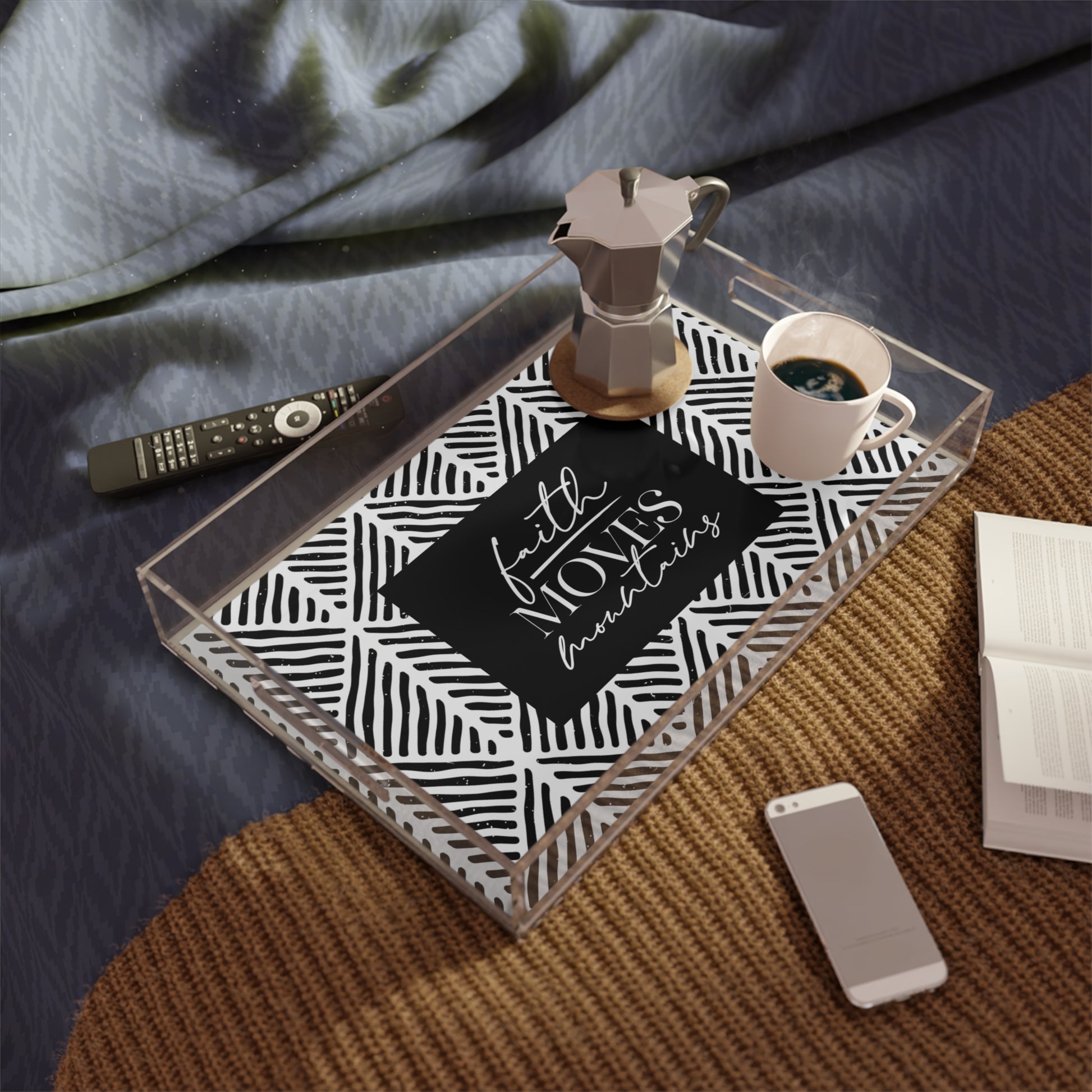 Elevate your hosting game with the Koya serving tray, a stunning blend of elegance and empowerment. Featuring the inspiring words “Faith Moves Mountains” framed by a bold black-and-white African print, this tray is as functional as it is beautiful. Perfect for serving up holiday treats, stylish cocktails, or simply as a statement decor piece, the Koya tray brings sophistication and meaning to any gathering. Let it remind you—and your guests—of the strength and faith that carry us through.