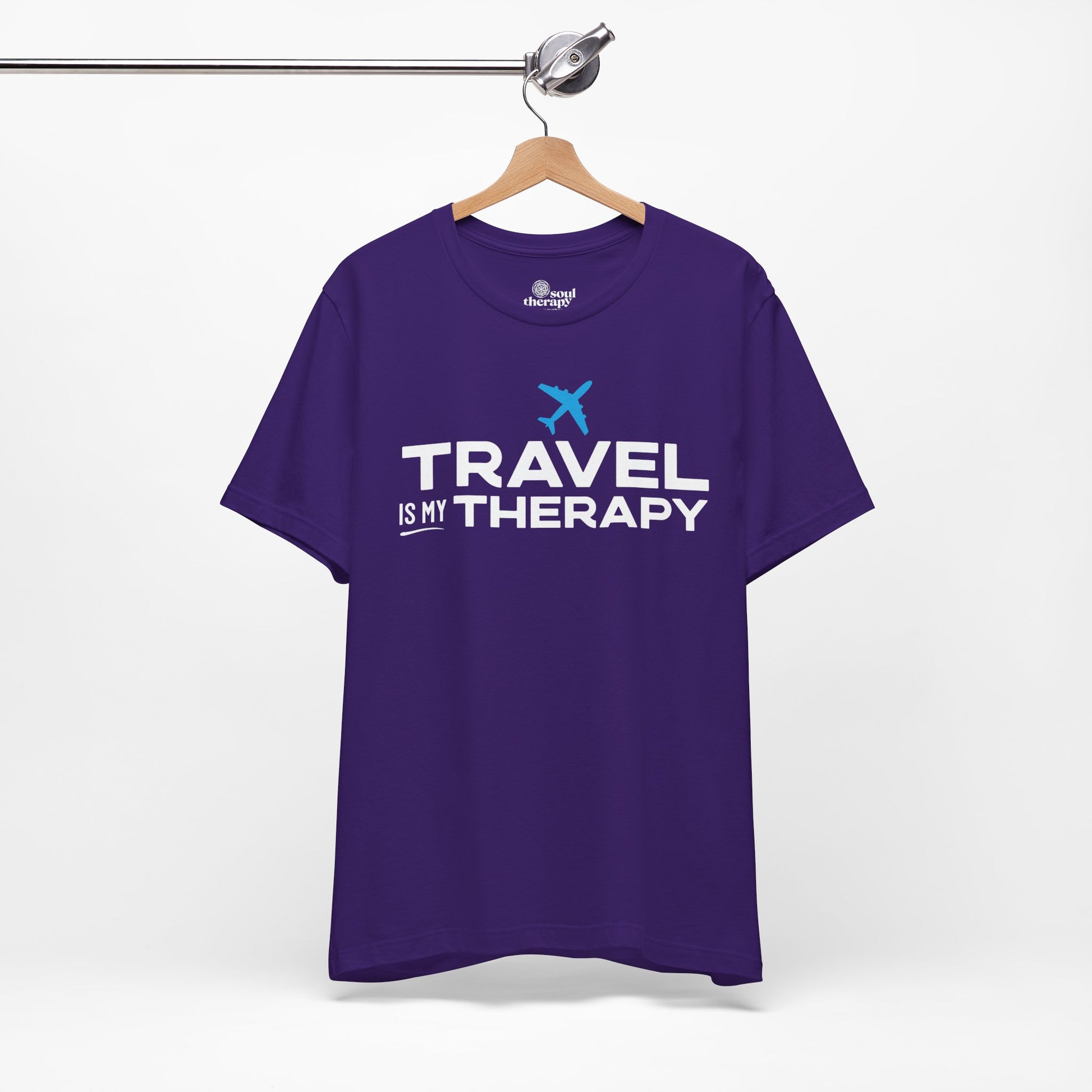 Rock our 'Travel is my therapy' tee on your next adventure, designed for comfort and style wherever you roam. Whether you're exploring bustling cities or serene natural landscapes, this tee is the perfect companion to elevate your travel experience and express your love for adventure.